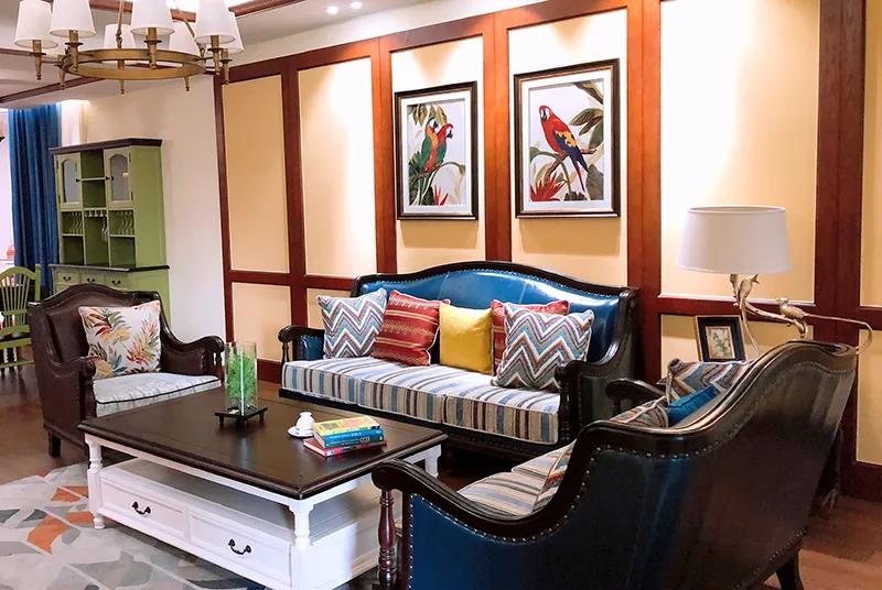 想要凸显美式复古迷人的质感,需要大件家具来奠定整体基调。客厅中比较受关注的就是沙发了。一张精致大气的真皮实木沙发,能够给人眼前一亮的感觉,也更加实用耐看!