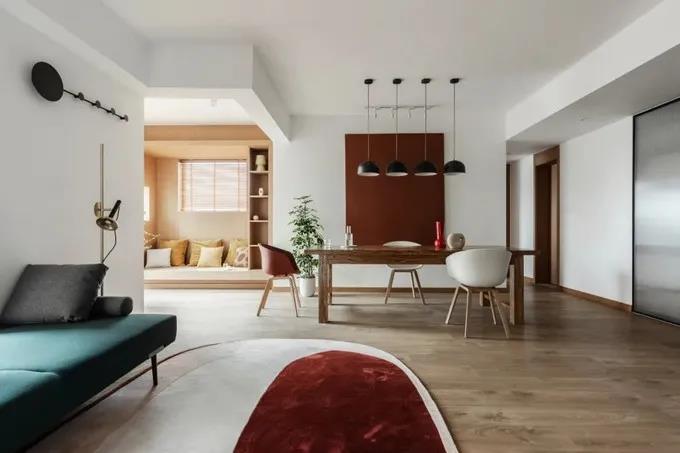 从客厅到餐厅,全包圆设计师借鉴了中国文化的留白气韵,让房间拥有了极致开阔的视野,轻描淡写,随意一瞥,仿佛展开了一副宋代山水画卷,干净利落,淡而不素,灵动飘渺。拆除了原本厨房与客厅之间的隔断墙,做了扇磨砂玻璃隔断,进而呈现出一个精致且与整个空间更加连贯的半开放厨房。